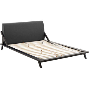 Enjoy serene sleep with Larry. Featuring an elegant sled design, the Larry Queen Platform Bed comes with a fine polyester fabric upholstered headboard, solid wood frame, and a slatted wood support system that provides lasting support for memory foam, innerspring, latex, and hybrid mattresses. The perfect complement to your master suite or guest bedroom, Larry is a sleek mid-century platform bed perfect for the modern home.