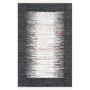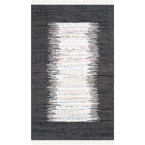 From the Montauk Collection, this ivory and black rug is hand woven of marvelously soft cotton yarns. The contrasting colors are speckled with a rainbow of hues, bringing playful vibes to this breezy design. Flat weave pile and fringe detailing make this floor covering an ideal choice for coastal and contemporary beach decor.
