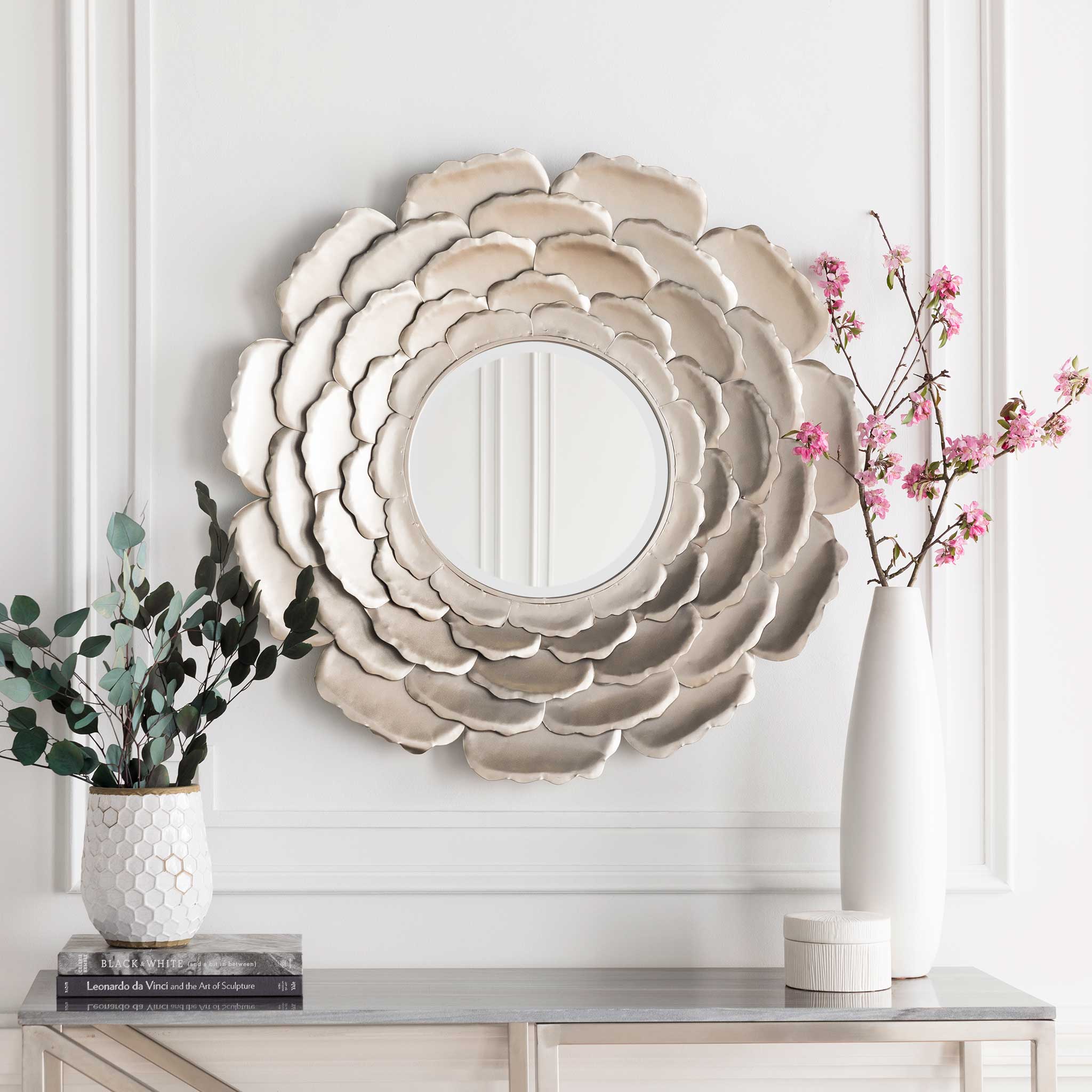 As stunning as a flower pieced straight from the garden, this elegant mirror will be the perfect addition to any home decor. Featuring a fabulous raised flower framing in smooth silver coloring, this piece will wrap your space up in the latest trend. Genuinely faultless in aspects of construction and style, this piece embodies impeccable artistry while maintaining principles of affordability and durable design, making it the ideal accessory for your decor.