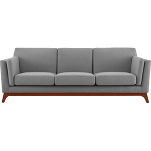 Distill organic mid-century charm with Casa Upholstered Fabric Sofa. Clean lines and flared arms add intrigue to the elegant silhouette, as the broad, oversized profile offers up a comfortable place to rest and relax. Finely upholstered in soft polyester fabric, Casa features plush, dense foam padding, removable cushions for easy cleaning with machine-washable cushion covers, a solid wood frame with tapered legs, and plastic non-marking foot caps. Update your living room, lounge area, apartment or small living space with this low profile contemporary couch perfect for all casual seating needs.