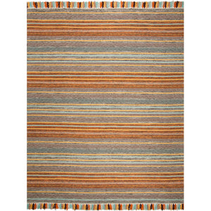 From the Montauk Collection comes this lively area rug styled with multi colored fringe and bands of geometric pattern. Cotton yarns are hand woven into a flat weave to bring a low accent of texture and decorative depth to living rooms and bedrooms. Colored with turquoise hues, this floor covering displays and earthy look ideal for enhancing tribal and organic contemporary spaces.