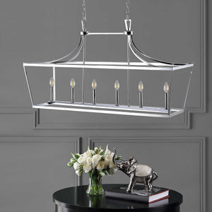 Transform any dining room with the bold, contemporary style of this expansive 6-light pendant. An homage to the art of fine metal craftsmanship, its modern minimalist lines and chic curves are highlighted with a warm, luxurious chrome finish.