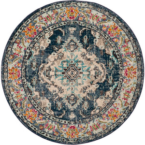 From the Monaco Collection, this navy and light blue area rug is power loomed using long-wearing polypropylene yarns. Styled with softness and easy care in mind, the Persian motifs are finished with a worn look to add a folkloric feel to contemporary decor.