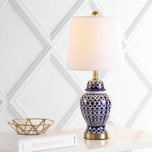 This bold, blue and white table lamp is perfect for the modern tastemaker. Its unique pattern on its ceramic body is paired with a sleek off-white shade. It's the perfect focal point for the bedroom, living room, or hallway.