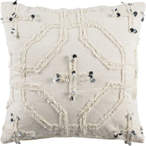 Charming Moroccan motifs become mod interior decor in the playful design of the Daleyza Pillow. A raised pattern of soft cotton and tasteful sequin accents enhance the boho-chic look of tone on tone ivory hues. Daleyza brings a subtle touch of whimsy to the bedroom, den or family room.