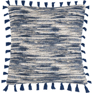 Tie-dye design is treated to rippling soft textures in the Makai Pillow. Cool blue and creamy white hues mingle within the soft, fringed edges of this charming accent accessory for a look that is both mod and classy. Easy-access care and cleaning is made simple with a convenient hidden zipper on the back cover.