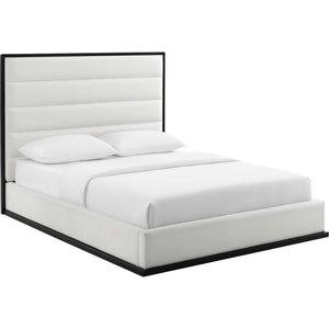 Anchor your bedroom with the elevated design of the Asher Platform Bed. An elegant addition to the master suite or guest room, Asher is made of durable laminated veneer lumber and MDF with a sturdy solid wood mattress support slat system that eliminates the need for a box spring. This queen platform bed accommodates memory foam, spring, latex, and hybrid mattresses and features smooth faux leather upholstery. Complete with paneled detail that rounds out the contemporary style with a touch of texture, Asher combines a reinforced bed frame and tall padded headboard into one impressive piece perfect for the modern home. Assembly is required.