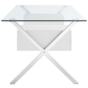 Keep your thoughts flowing with the Astute Modern Office Desk. Suspended by a polished stainless steel frame, the right and left storage drawers balance an otherwise transparent piece. Outfitted with a tempered glass top, Astute encourages you to hold onto the thoughts that matter, and free your mind from distraction.
