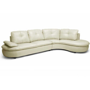 The Bari Designer Sectional is a contemporary creation featuring a set of sofa and chaise lounge that lets you and others eelax for years. Sturdy hardwood frame, foam cushioning, and pocket springs construct. Finished in bonded leather and dark brown wood legs with non-marking feet. The backrest cushions are removable. Minor assembly is required.