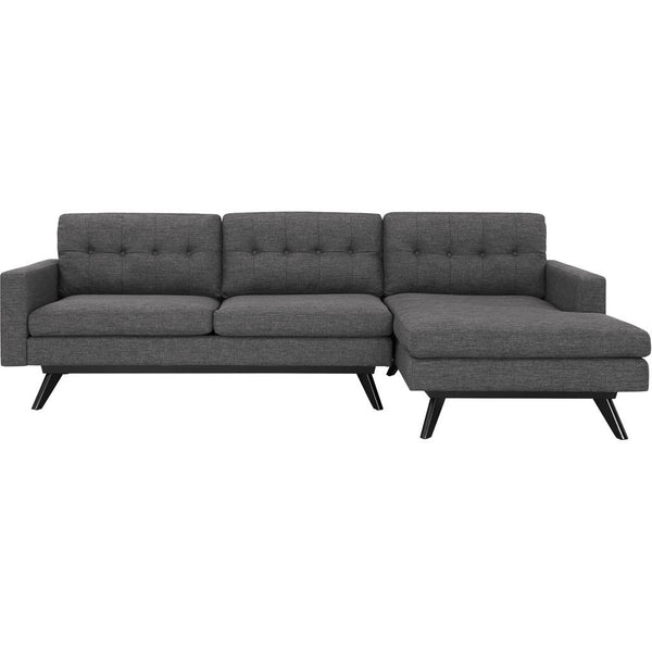 Capturing the essence of mid-century style that refuses to fade into obscurity, this sectional is a welcoming addition to any room. The clean, straight lines merge with classic button tufts, while the eco leather upholstery is just as soft and inviting as it looks. Handcrafted from a kiln dried solid wood frame, the Blair is sturdy, elegant, and comfortable, while offering lasting style for years to come. Available in either right or left configuration options.