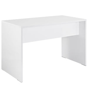 At times there seems like an insurmountable gap between our inner reality and the outside world. Through concentrated efforts we manage to step outside, connect, and communicate. The Brim office desk reminds us to escape introversion and traverse the seamless divide between our work, and the work of those around us. Brim is constructed of sturdy fiberboard and comes with a high gloss finish on all visible sides.