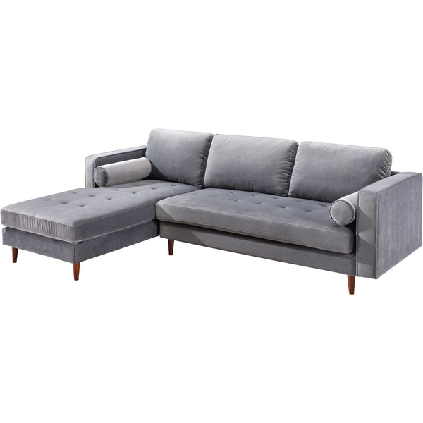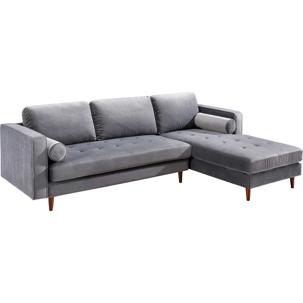 The beautiful mid-century designed Cody sectional offers relaxation and style. Featuring removable cushions upholstered in sumptuous velvet, this handsome sectional is available in multiple color options and either RAF or LAF configuration.
