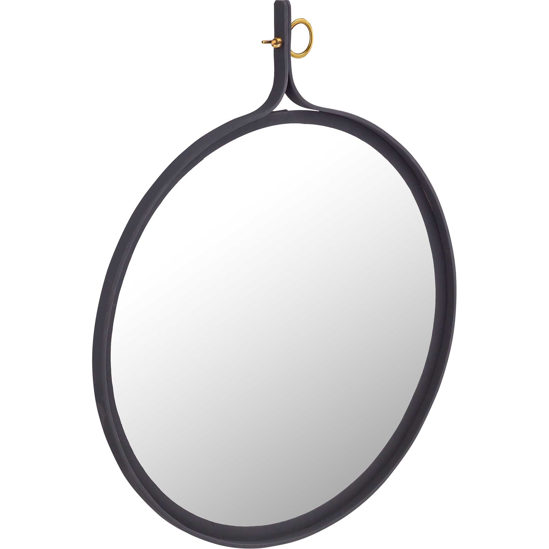 Designed with a round iron frame, simple gold ring detail, and versatile black finish, the Giani wall mirror works well in nearly any decor.
