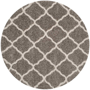 This gray shag from the Hudson Collection, with its white quatrefoil design, is a plush pile floor covering ideal for spacious rooms and modern styled home furnishings.
