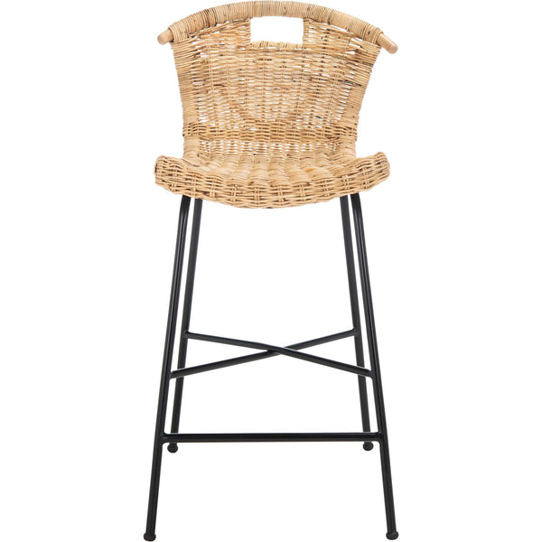 This Jacky Counter Stool brings a breezy, tropical feel to any dining area with its masterful, coastal restyling of a Mid-Century classic. Jacky's natural woven rattan updates the retro silhouette, while a slim black frame enhances its airy ambiance.