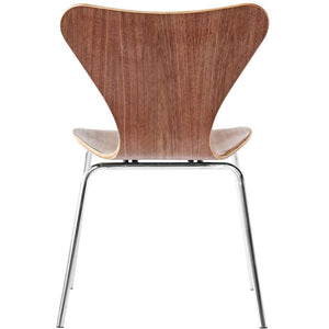 A molded plywood chair with chrome legs. A simple design with maximum comfort, the James Dining Chair will match up to any table of your choice. Chair is stackable for convenient storage.