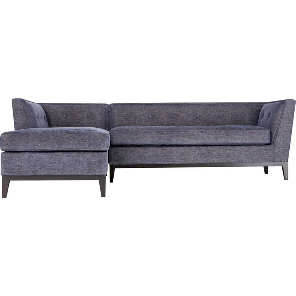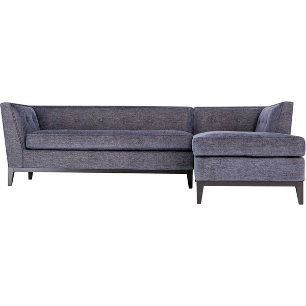 Inspired by Mid-Century design, the Jonah sectional is extremely comfortable and boasts impressive craftsmanship. Completely handmade, this sectional features a kiln dried wooden frame, button tufting, piped stitching and a solid Birch wood trim and legs. This eye-catching sectional will add a pop of style to any space. Available in a stunning azure or gray textured linens and in either an RAF or LAF configurations.
