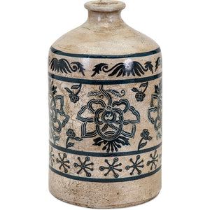 Add a global touch to any home with this large hand-painted floral terracotta vase in cream and black.