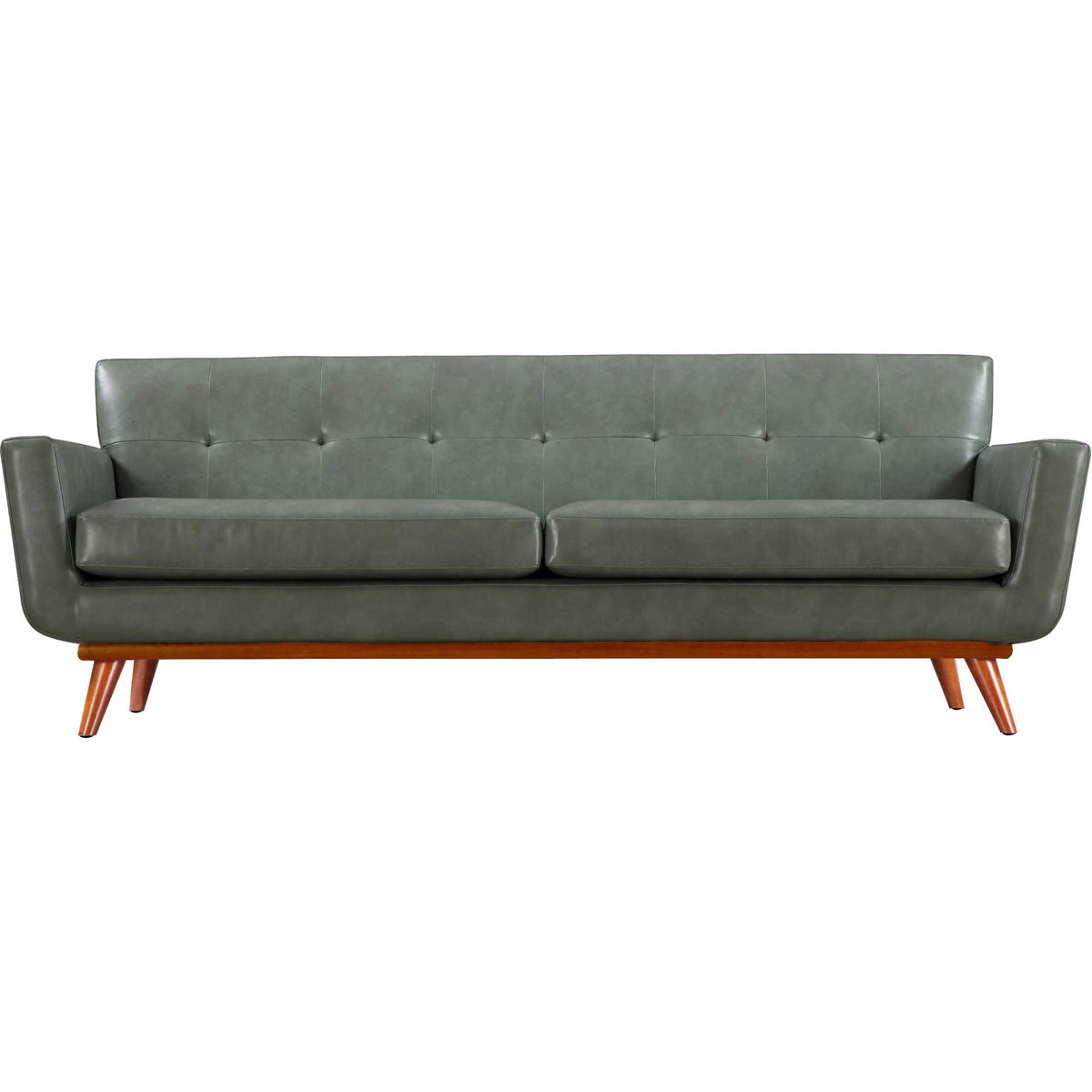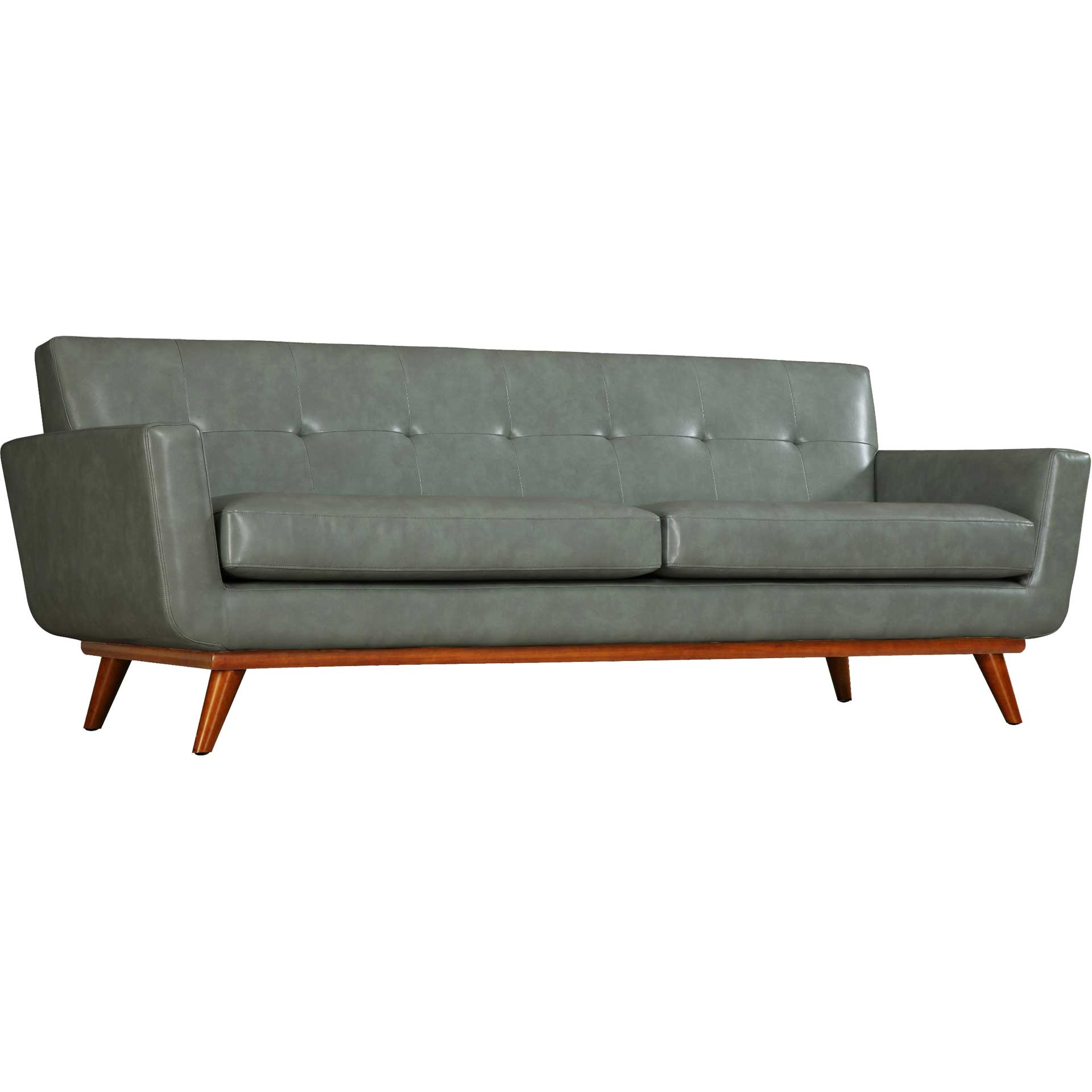 The Lynette loveseat captures the essence of Mid-Century style that refuses to fade into obscurity. The gorgeous smoke gray eco leather is welcoming and adds charm to any room. The cushioned arms provide added comfort, while the small scale tufting adds a pop of personality. Handcrafted the Lynette collection will undoubtedly add style to your space, while the kiln dried solid wood frame will assure years of support and comfort.