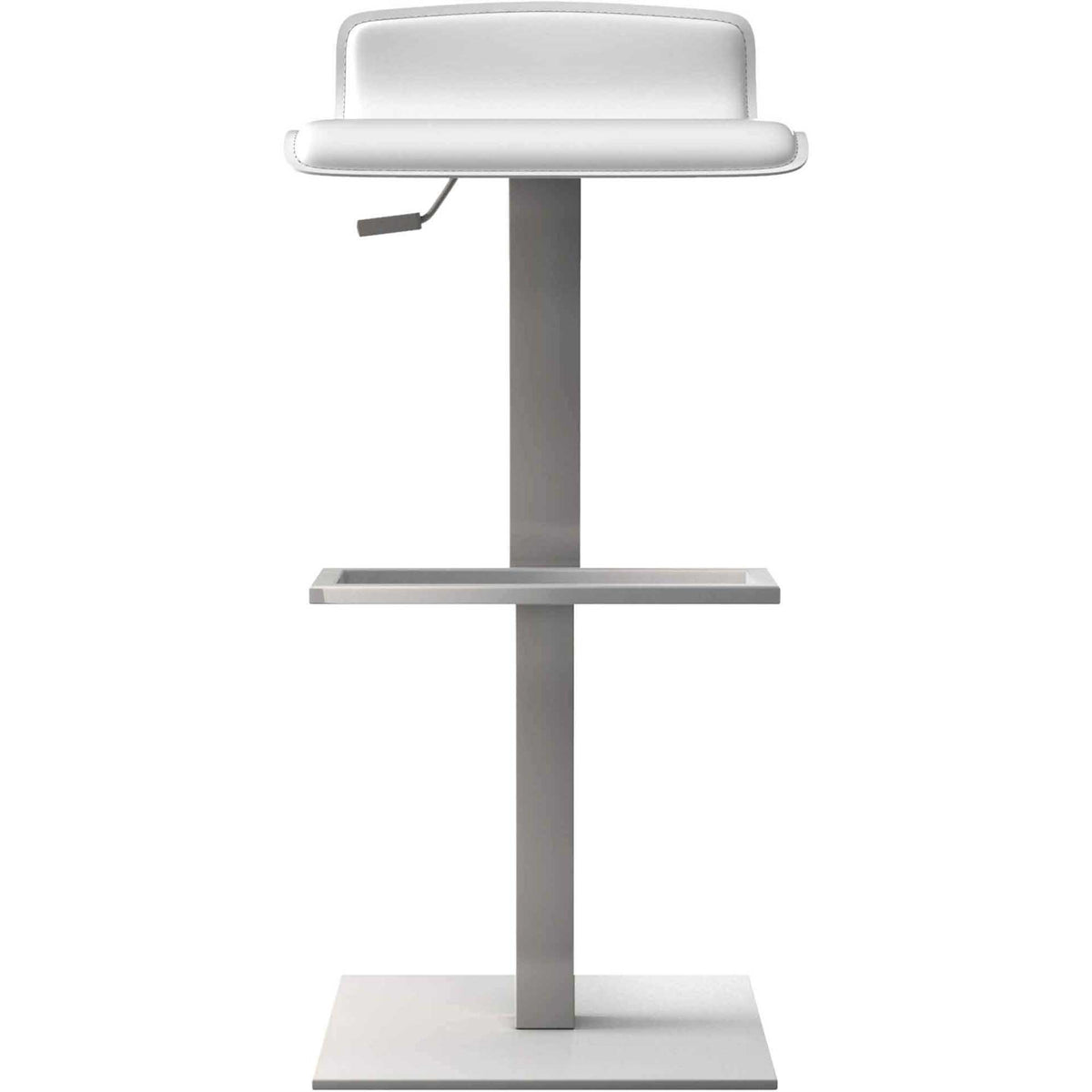 Our Messina Counter/Barstool is a minimalists dream come true. Reclaimed leather seating features a sleek, low profile design. Sturdy stainless steel provides a clean frame with crisp angles. German-made hydraulics allow for fluid height adjustment.