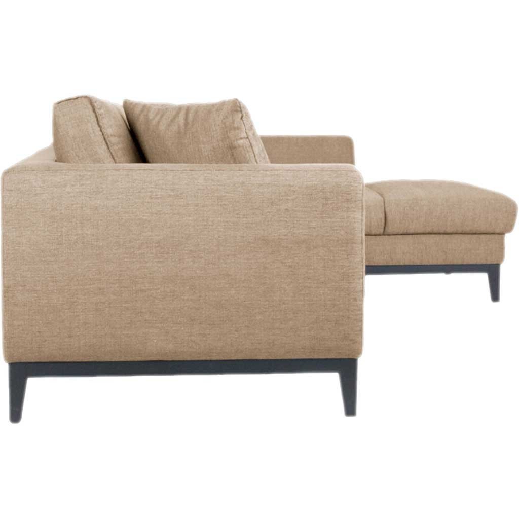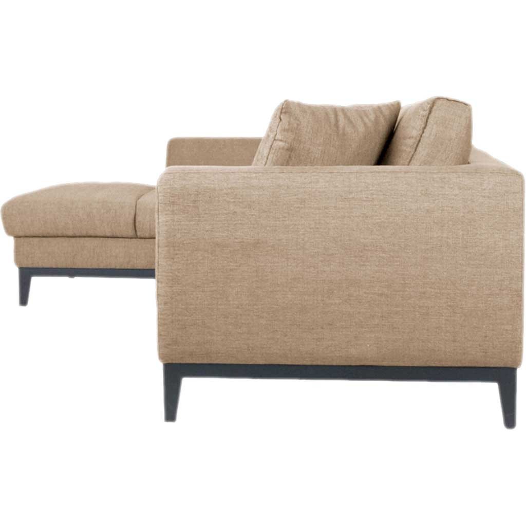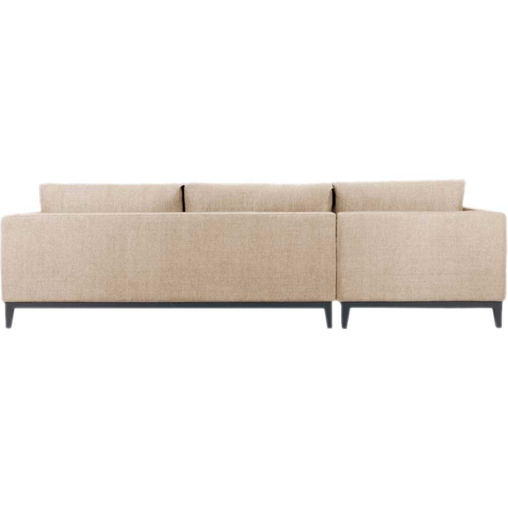 Sit back and relax in the casual Nicholas Sectional. Made with a durable, low-maintenance polyester upholstery, it's a perfect place for friends and family to gather. The sofa features loose-back cushions, two matching toss cushions, and solid wood legs. Assembly required. To prolong the life of your sofa, do not expose to direct sunlight or heat sources; keep fabric dust-free with an occasional vacuuming; professional cleaning recommended.