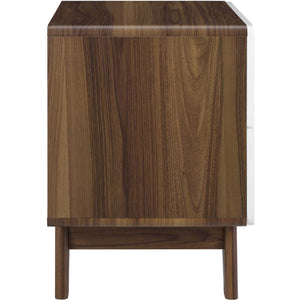 Bring the iconic energy of mid-century style to your bedroom, guest suite or living room with the Orion 47" Nightstand or End Table. Crafted with durable fiberboard for reliable support, Orion comes with a splayed frame, rounded edges, linear design, wood grain veneer, and two full-extension drawers for concealed storage. The perfect complement to your bedroom decor, display and store your books, pictures, and bedtime essentials with this contemporary modern nightstand or end table.