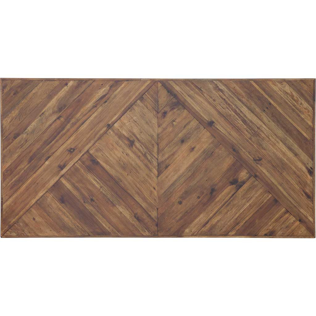 Each piece of solid acacia is carefully hand-selected to ensure great looking tops with attention paid to variation and the final appearance of each individual piece. Parkuet patterned top with painted black legs. Dust as needed or wipe with a clean dry cloth.