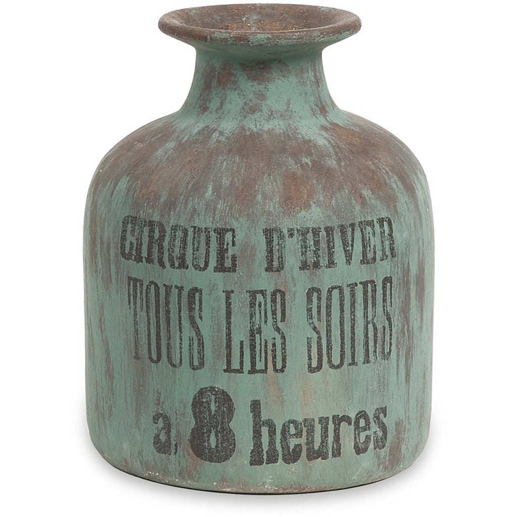 French circus script lends this collection a Provencal taste. Made of handcrafted ceramic, in rich, earthen hues, the vases create a compelling focal point when displayed in multiples, as well as individually set atop a table.