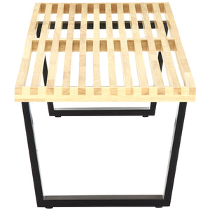 The 6' Saint Bench is composed of environmentally-friendly Rubberwood, and two black lacquered bases with glides. The top of the bench has slats, giving the bench an airy, modern feel. A versatile piece, it can be used as a seat or a coffee table, and looks classy in either situation.
