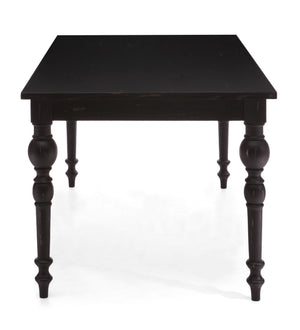 Voluptuous turned legs support the planked top of our solid elm table, marrying rustic simplicity with grand conviviality. Comes in natural, antique black, and antique white. Assembly is required.